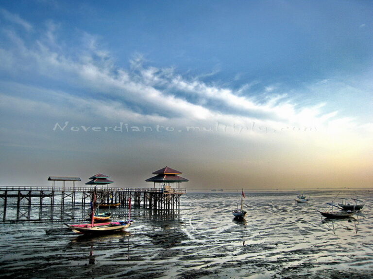 Kenjeran Beach, located about 9 km east of Surabaya, is a popular destination divided into two areas: the Old Kenjeran Beach with its traditional seaside charm, and the New Kenjeran Beach offering modern facilities; visitors can enjoy stunning sunrise and sunset views, take a boat ride toward the Suramadu Bridge, savor fresh seafood, and explore the iconic Sanggar Agung Temple, while the impressive Suroboyo Bridge adds to its appeal as a relaxing spot and favorite photo location, making Kenjeran Beach a perfect place to unwind and experience a blend of nature, culture, and culinary delights unique to Surabaya.